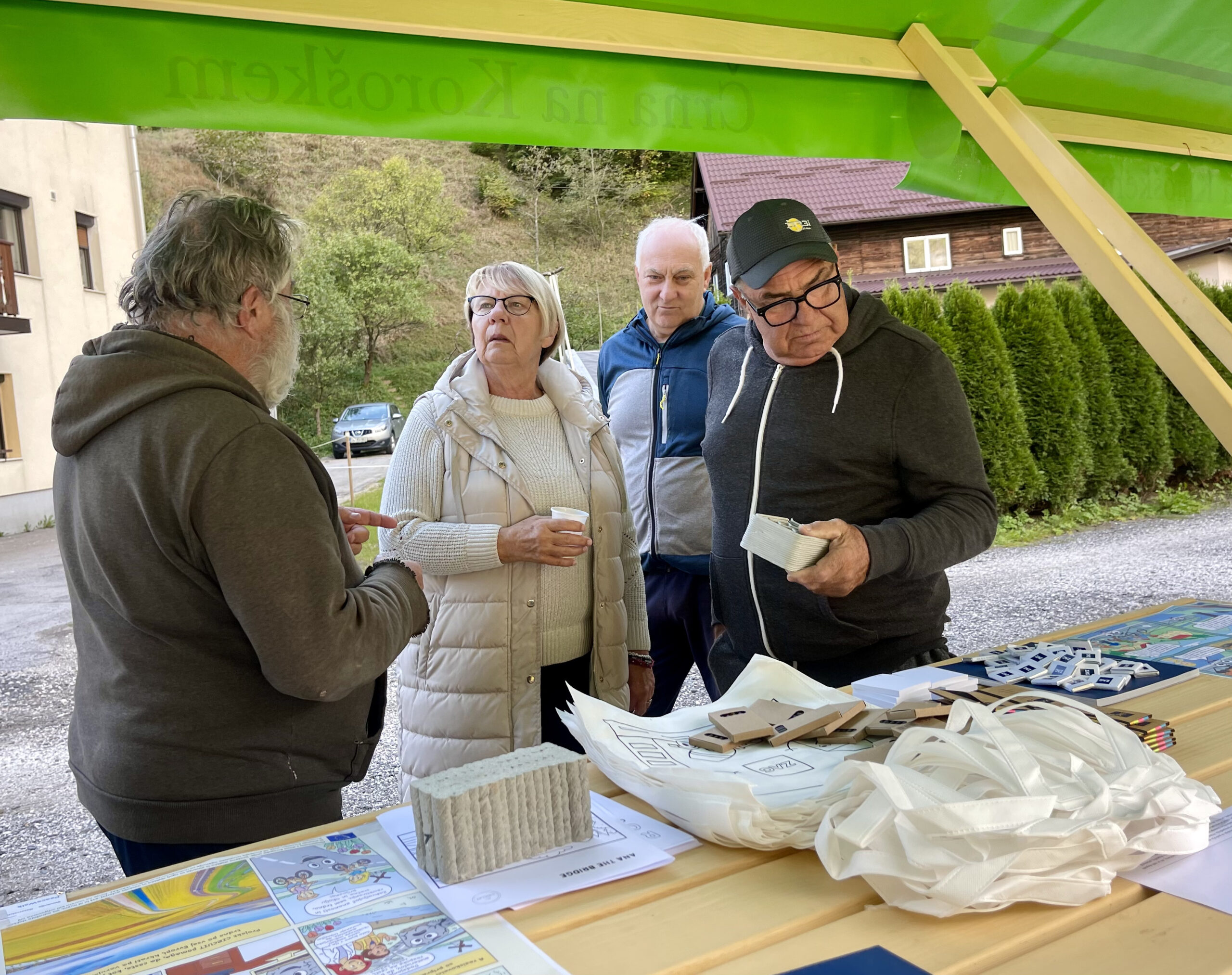 Later, the event opened to the wider community. Citizens, families, and local representatives gathered to explore the design of the future bridge, handle 3D-printed materials, take part in educational quizzes, and discuss how circular construction can reduce waste and strengthen local resilience.